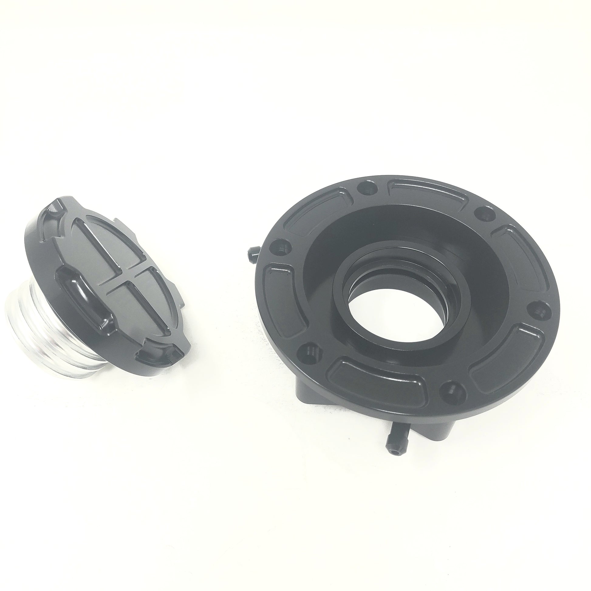 A black hard-coat anodized finish enhances durability while giving your tank a clean, modern aesthetic. The ergonomic cap design provides a smooth, confident grip—making every fuel-up quick and effortless.